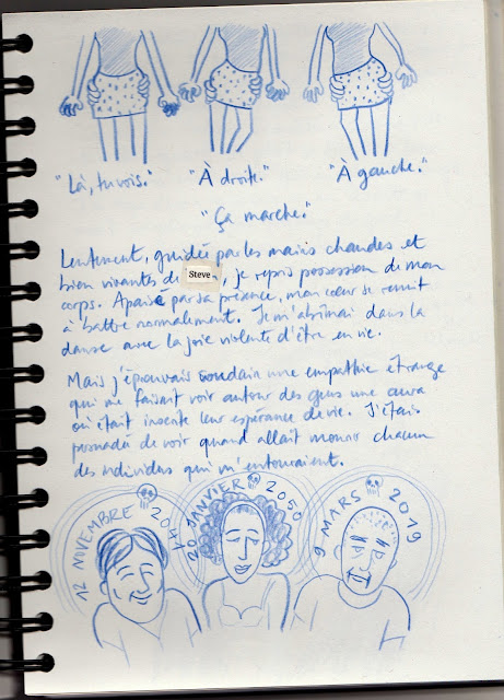 Aux hordes de lecteurs affamés qui quotidiennement me bombardent de messages privés pour se plaindre de la déliquescence de ce blog et qui à grand cris réclament des posts, des posts, des posts, je n'ai rien à dire pour atténuer votre peine, petits coquins gloutons que vous êtes, et, soyons francs, pas le moindre post en préparation, en revanche il se trouve que je suis actuellement dans un petit village du Gard, en isolement total pour écrire et dessiner des choses dont PEUT-ÊTRE je vous parlerai prochainement ou dans deux ans, et il se trouve aussi qu'à force d'isolement que seuls brisent de temps à autres de petits apéros avec des excentriques de plus de 50 ans - je suis dans le village où vit Crumb et il n'est pas le seul à être un peu allumé dans ces contrées croyez-moi - eh bien je perds peu à peu la boule, ce qui se manifeste par des moments de grand abattement suivis de moments de surexcitation dans lesquelles surviennent des crises de diarrhée mentale que j'essayais jusque là de juguler et que la nuit dernière je me suis décidée à déféquer sur du papier.